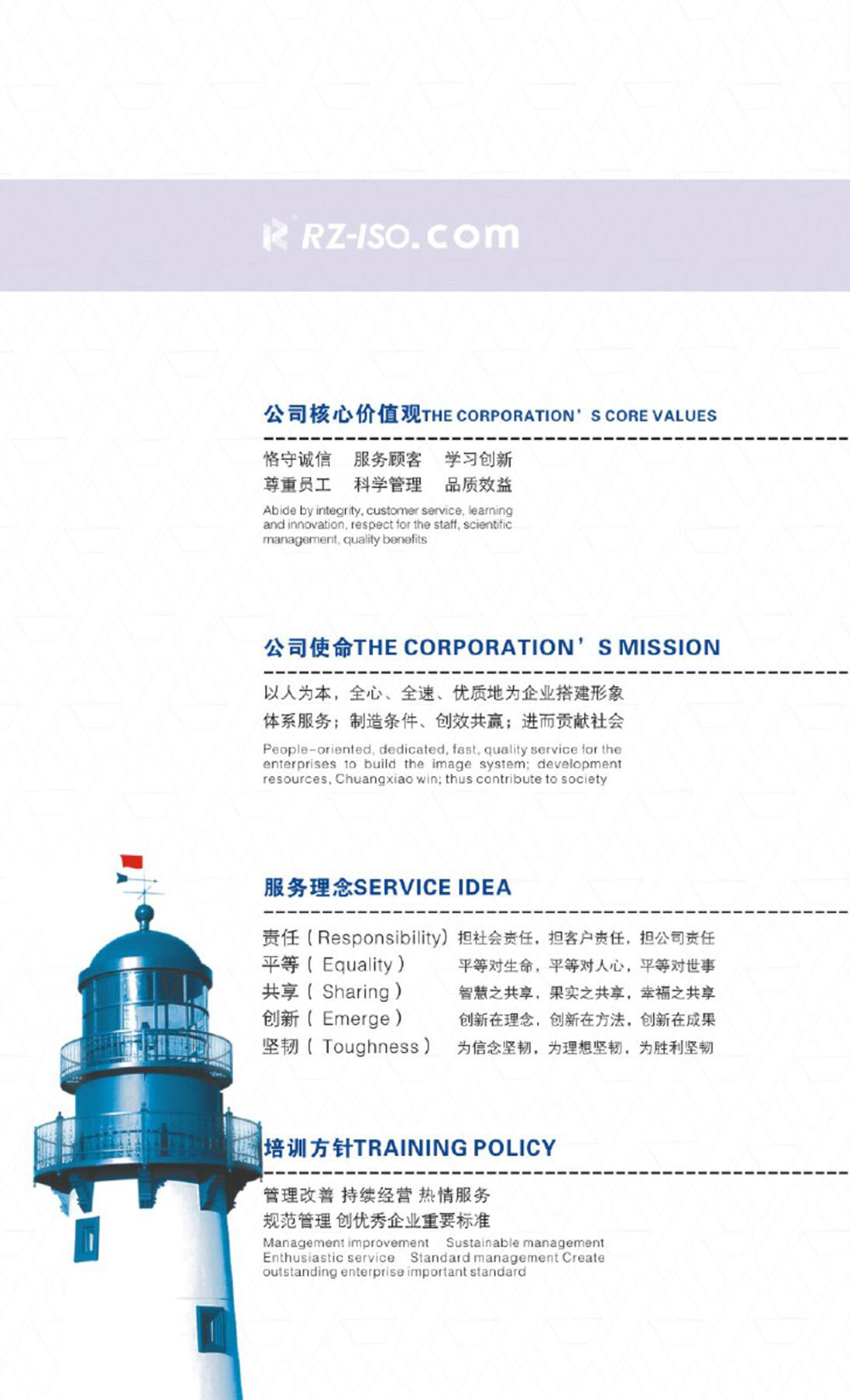 佛山市瑞斯認證技術有限公司自成立以來,始終堅持以人為本,以創新為發展動力,秉承“信譽第一,質量至上”的經營理念,及專業化的咨詢水平獲得咨詢企業及認證公司的一致贊譽。